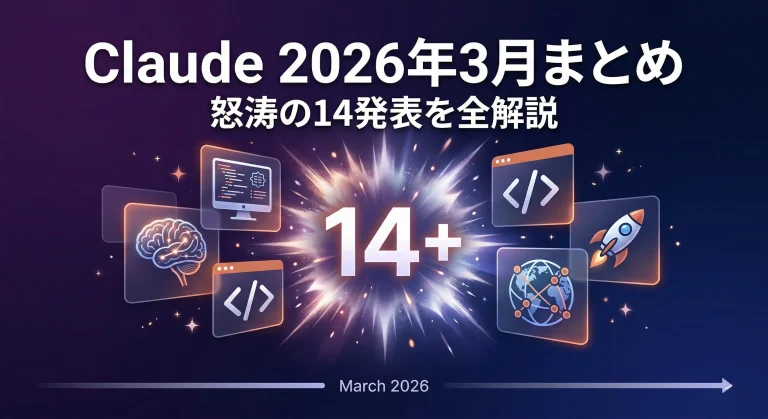 Computer Useは、Claudeがあなたのデスクトップ画面を直接認識し、マウスやキーボードを操作する機能です。たとえば「このPDFを開いて3ページ目の表をExcelにまとめて」と指示すれば、Claudeが自分でファイルを探し、アプリを切り替え、データを入力します。2026年3月24日に大幅強化され、Pro/Maxプランで利用可能です(macOS先行の研究プレビュー)。詳しくはClaude Computer Use完全ガイドをご覧ください。
