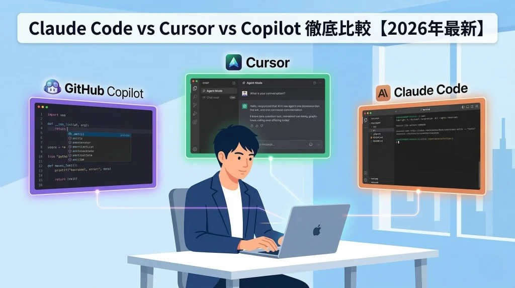 Claude Code vs Cursor vs GitHub Copilot 徹底比較【2026年最新】|あなたに合うAIコーディングツールは?
